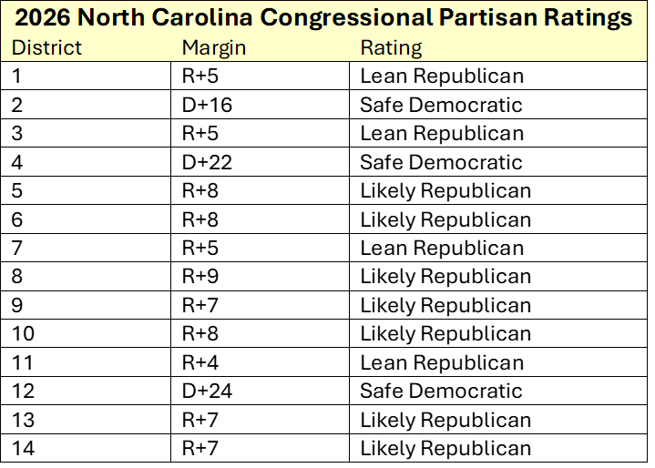 Rating the 2026 North Carolina congressional districts